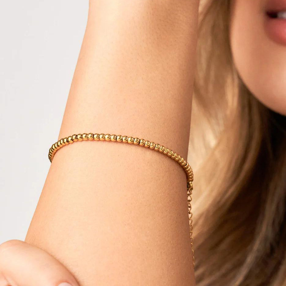 This dainty beaded chain is ideal for layering (or gifting) with other bracelets to create an effortless stack. Attach any of our pendants to make the gold bracelet unique to you, and choose between the two sizes to get the perfect fit.