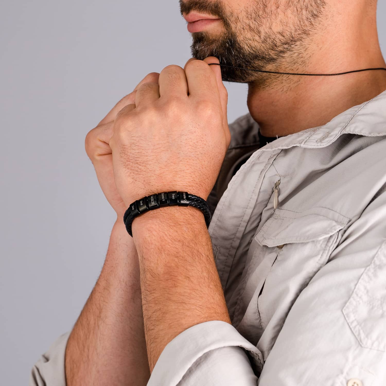 This Leather Bracelet with engraved beads is a perfect gift for your dad, boyfriend, friend, and brother on any different occasions. Made from high-quality leather, which is soft and comfortable to wear. it can be worn for a long time without worrying about hurting your wrist.
