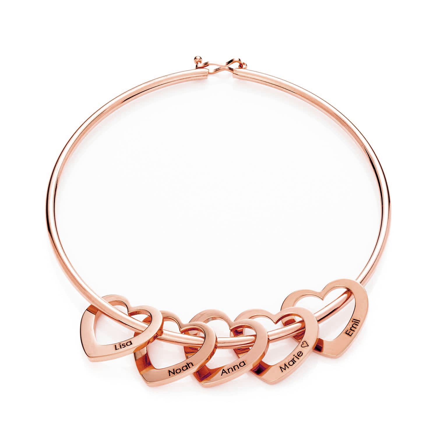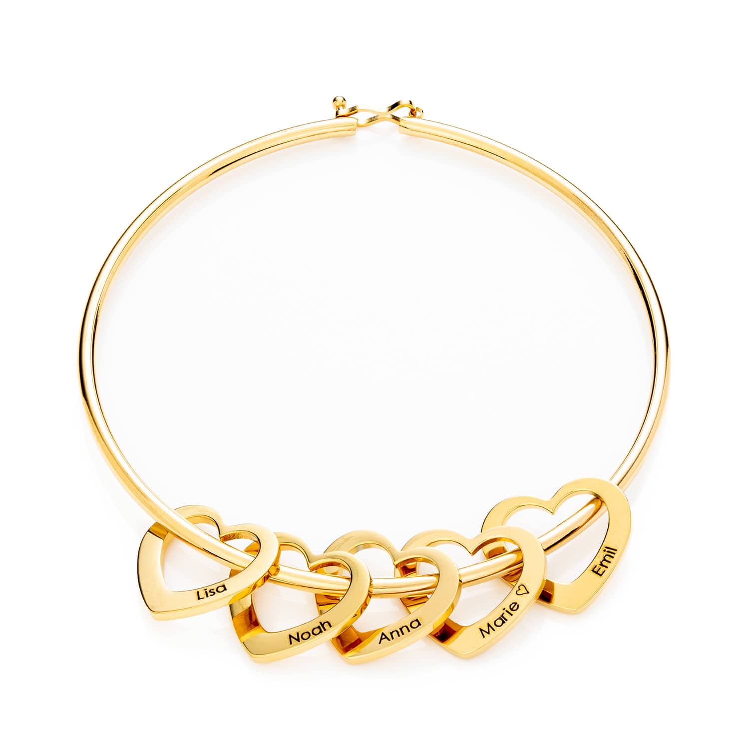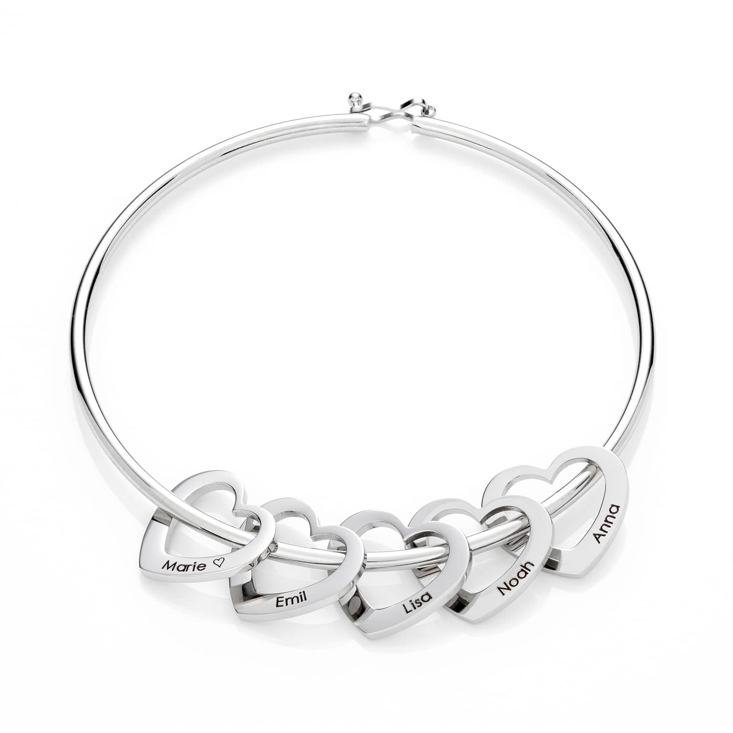 Custom Personalized gold silver Bangle with engraved heart pendants