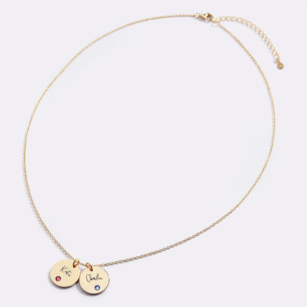 Personalized Custom Disc Birthstone Name Necklace