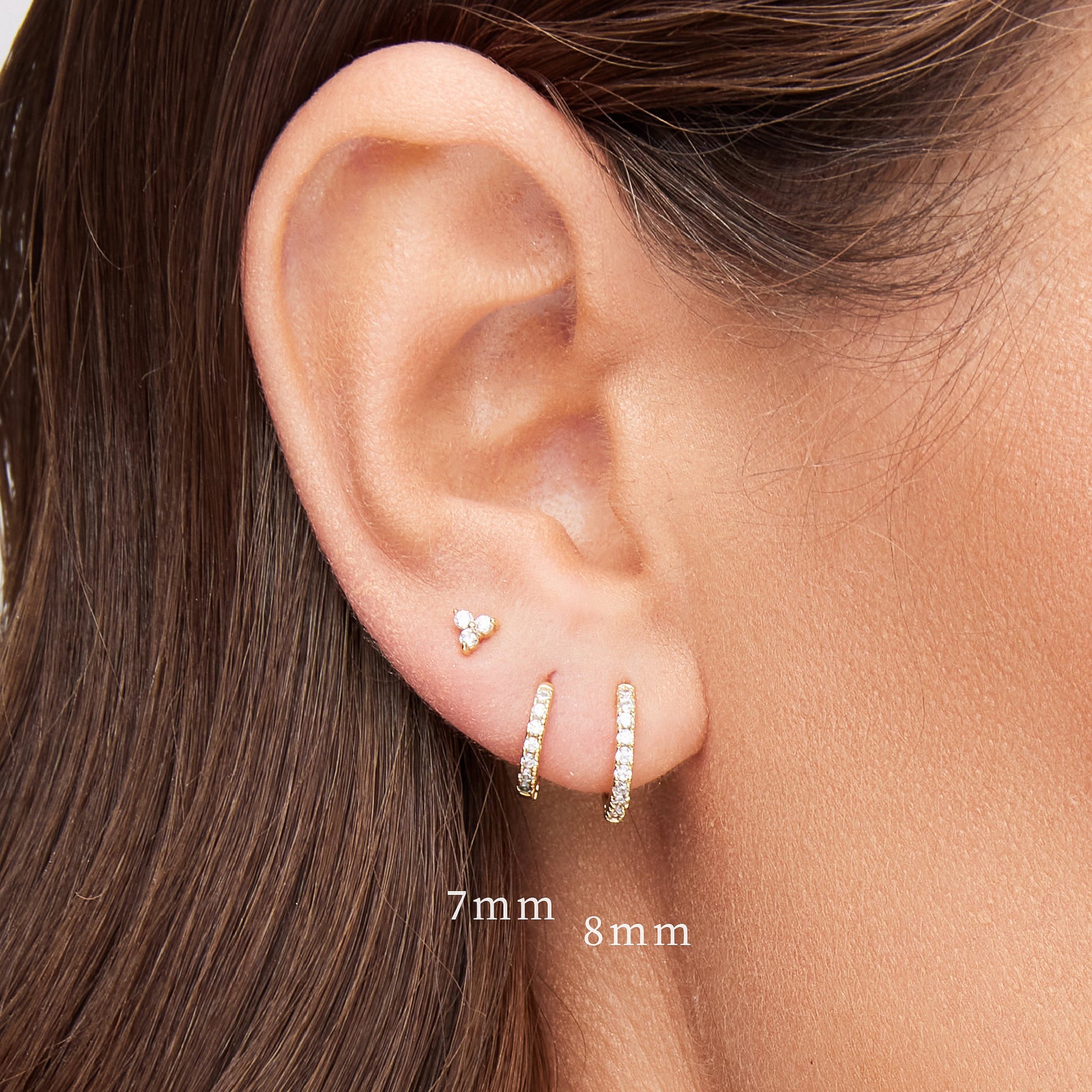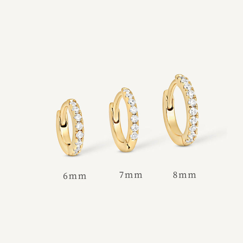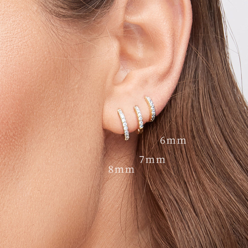 Our PAVE HUGGIES, are sparkly and timeless! They are available in 3 sizes and you can also mix and match them with other pieces from our earring collection for the perfect ear stack!